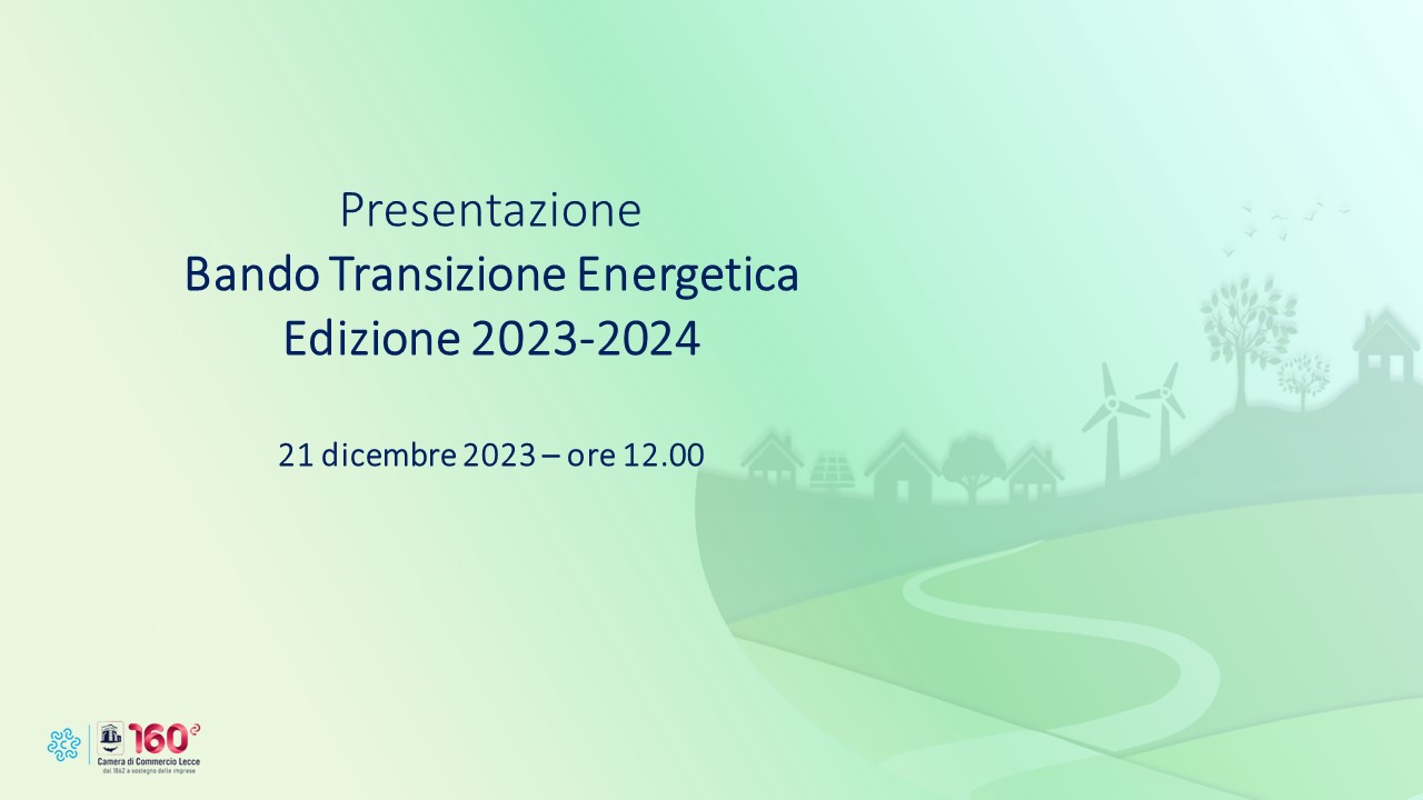 Presentazione Bando Transizione energetica: 21 dicembre ore 12.00