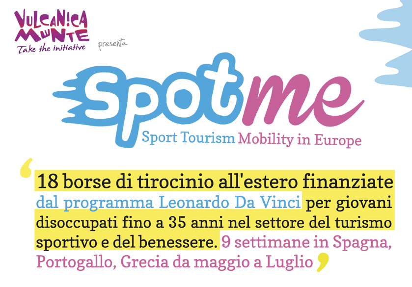 Il progetto, denominato Spotme "Sport Tourism mobility in Europe", offre delle borse tirocinio che avranno la durata di 9 settimane in una destinazione a scelta tra Spagna, Grecia e Portogallo e offrirà, a ciascun candidato, la copertura dei costi di viaggio, vitto e alloggio.