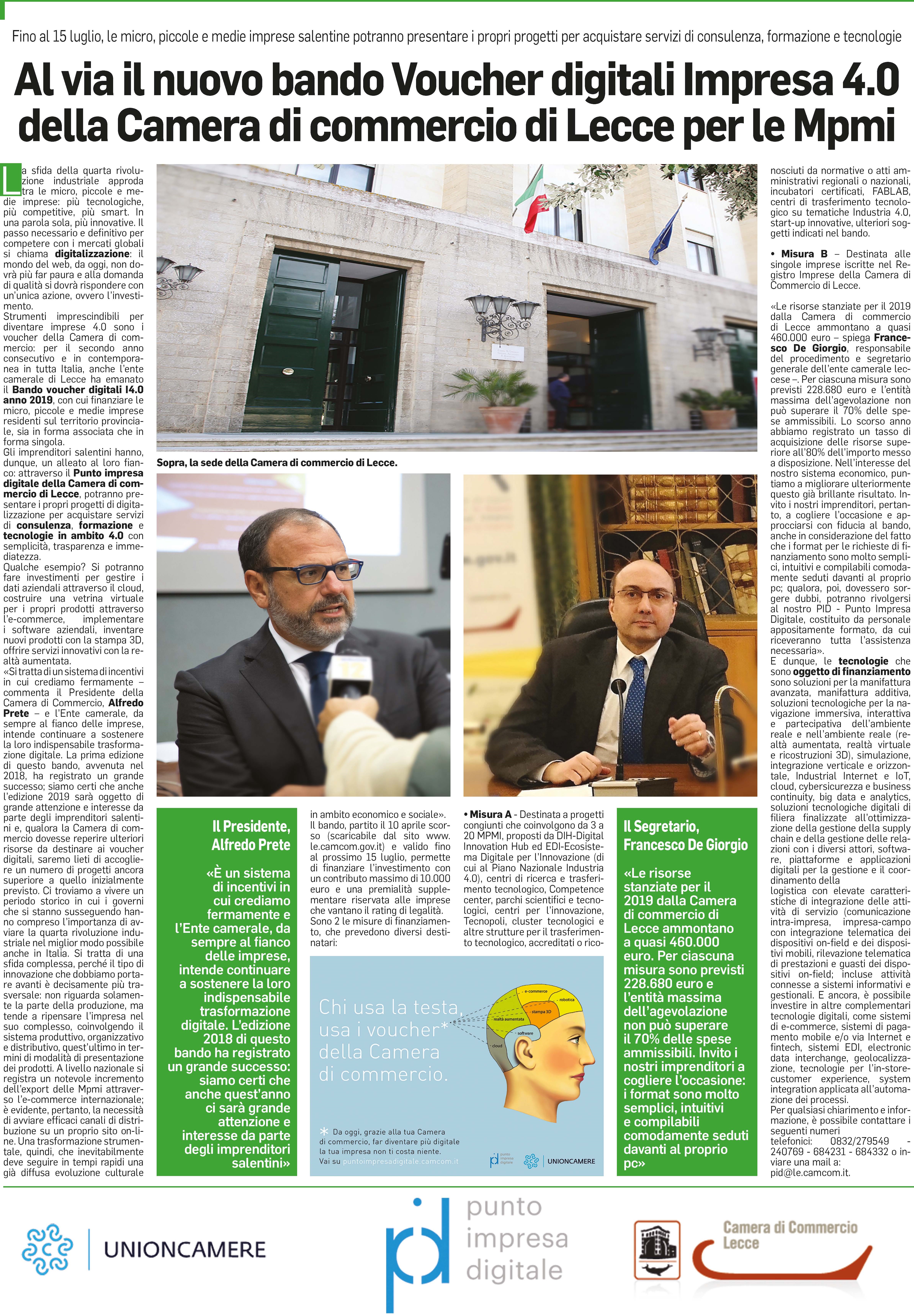 Punto Impresa Digitale, la Camera di Commercio di Lecce mette a disposizione € 457.360,00 a favore delle imprese che investono in servizi di consulenza, formazione e tecnologie per la digitalizzazione