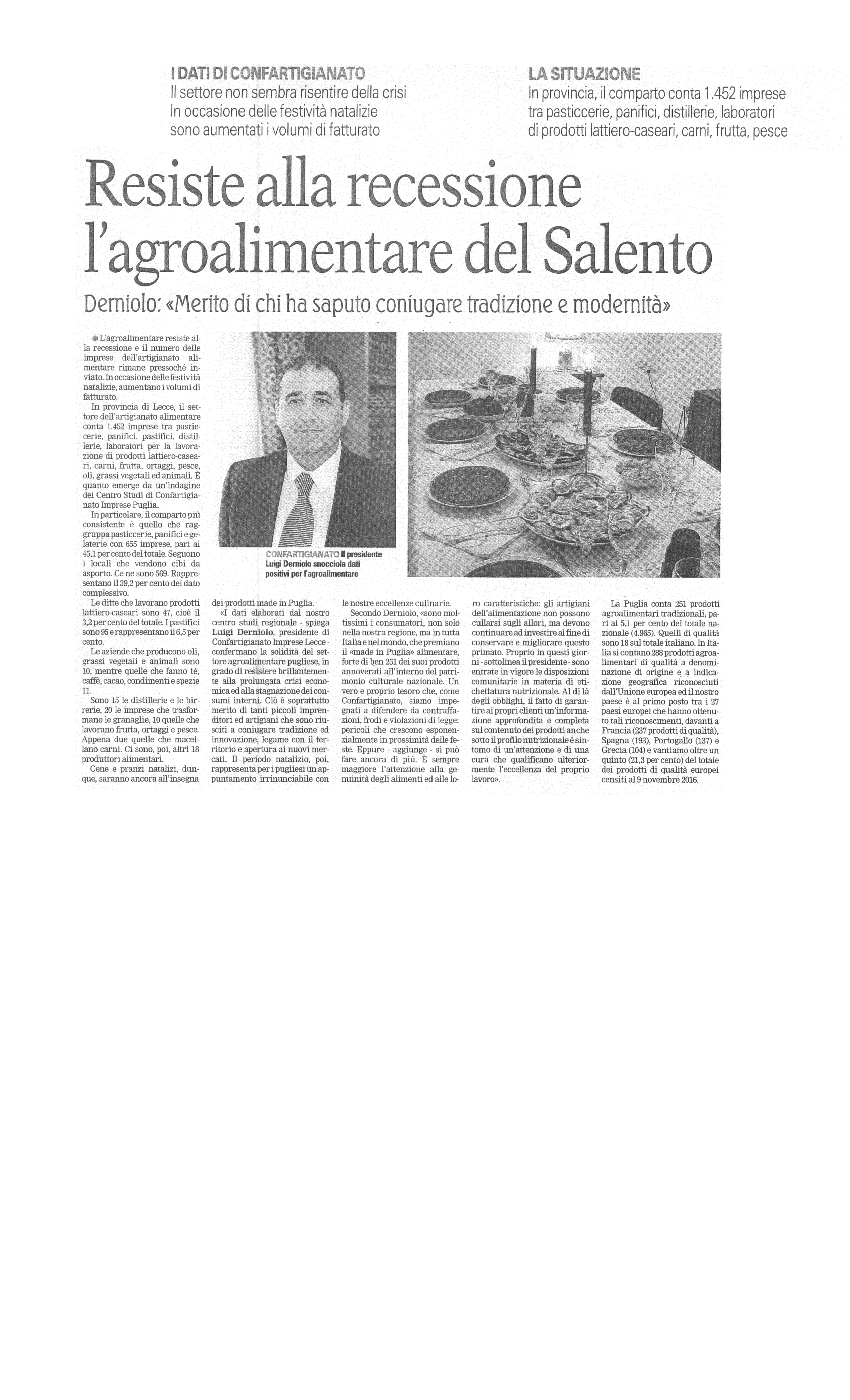La Gazzetta del Mezzogiorno 29/12/2016 "Resiste alla recessione l'agroalimentare del Salento"