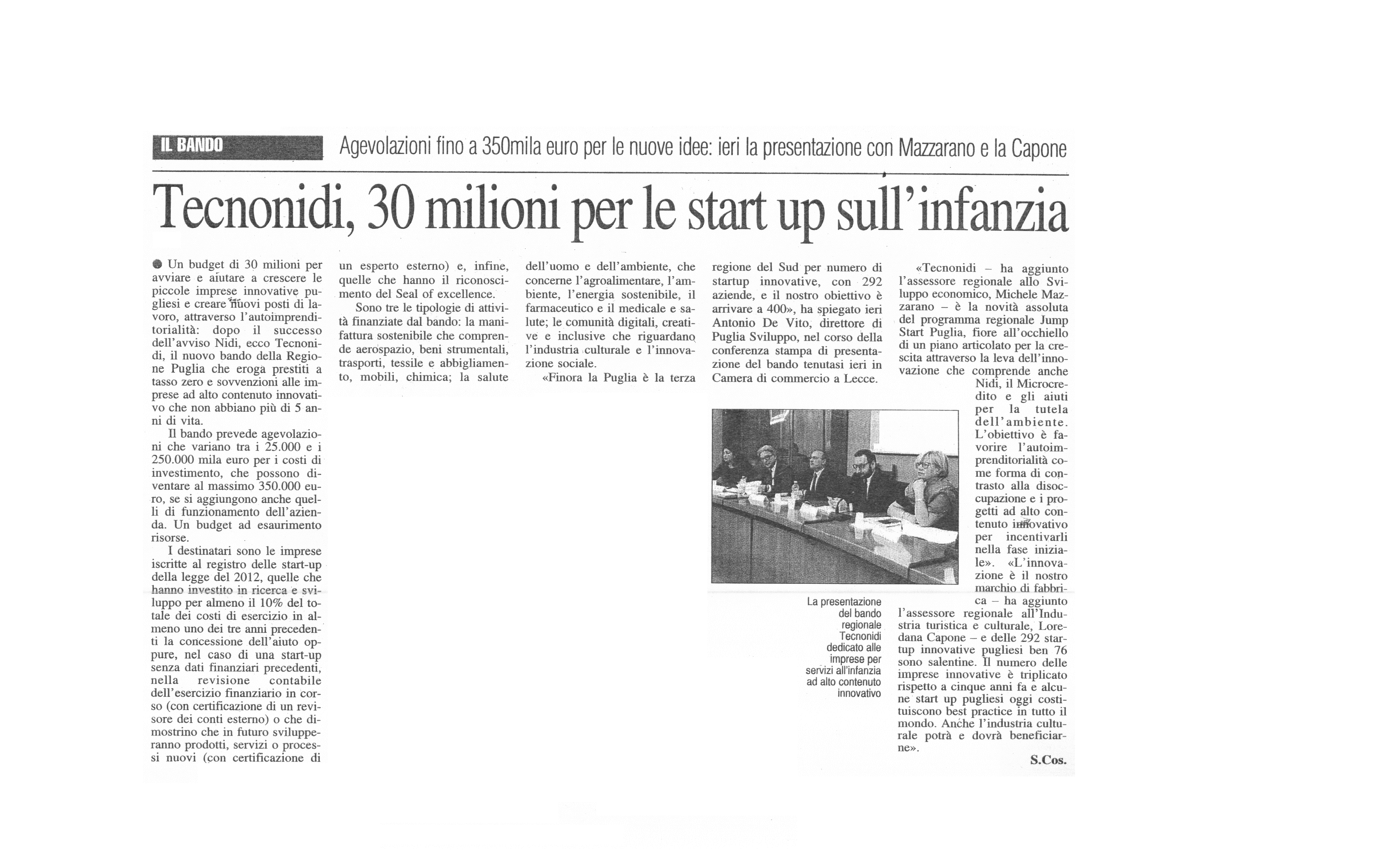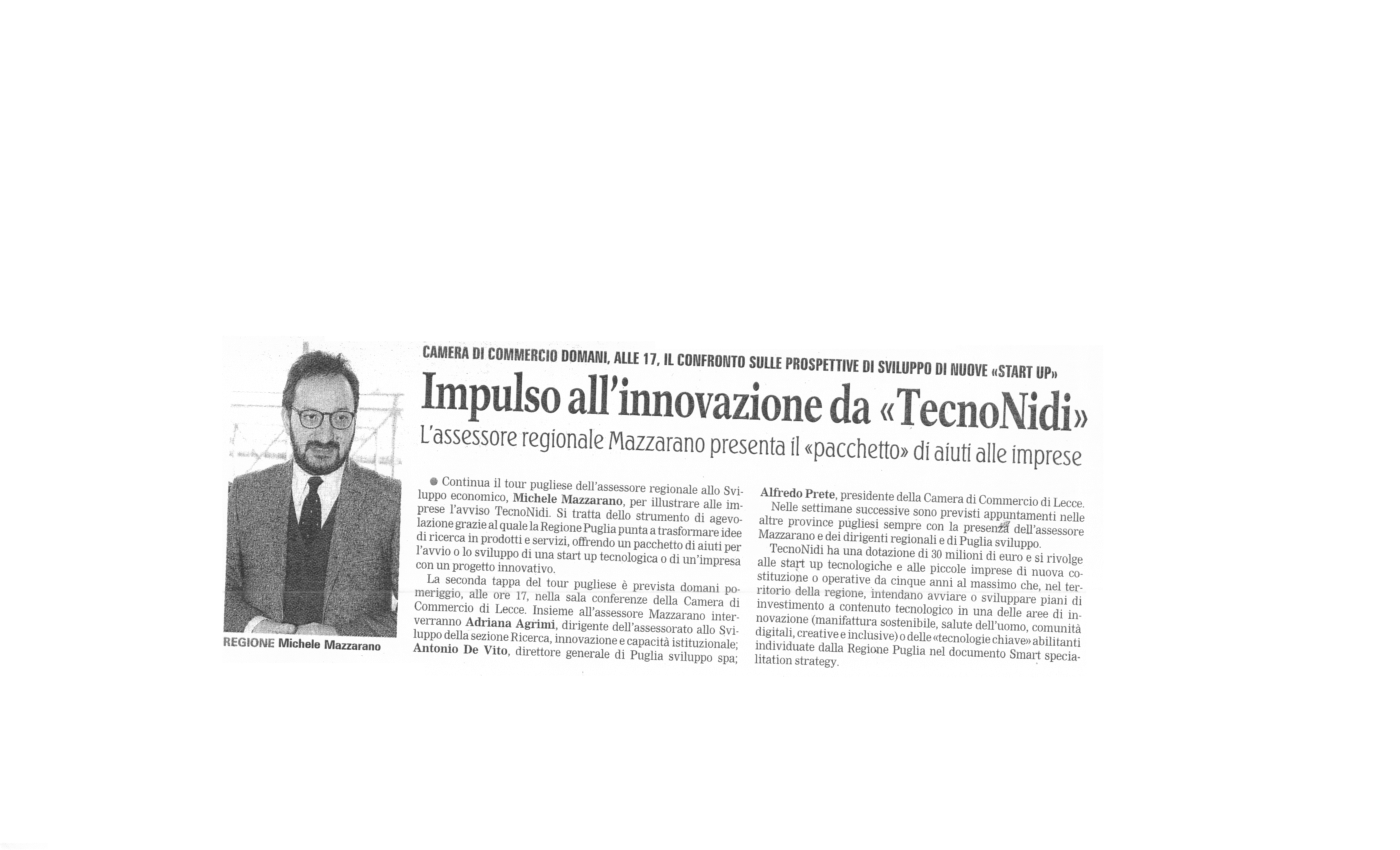 La Gazzetta del Mezzogiorno 12/11/2017 "Impulso all'innovazione da 'TecnoNidi'"