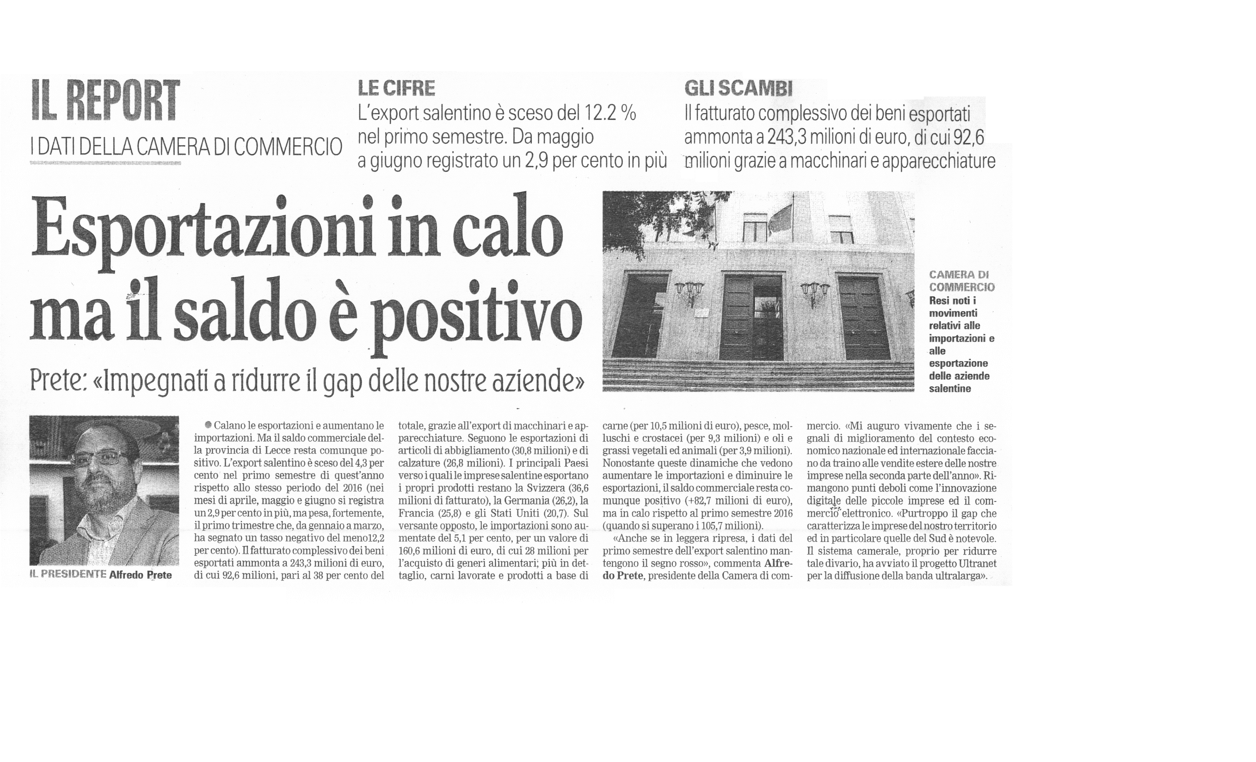 La Gazzetta del Mezzogiorno 18/10/2017 "Esportazioni in calo ma il saldo è positivo"