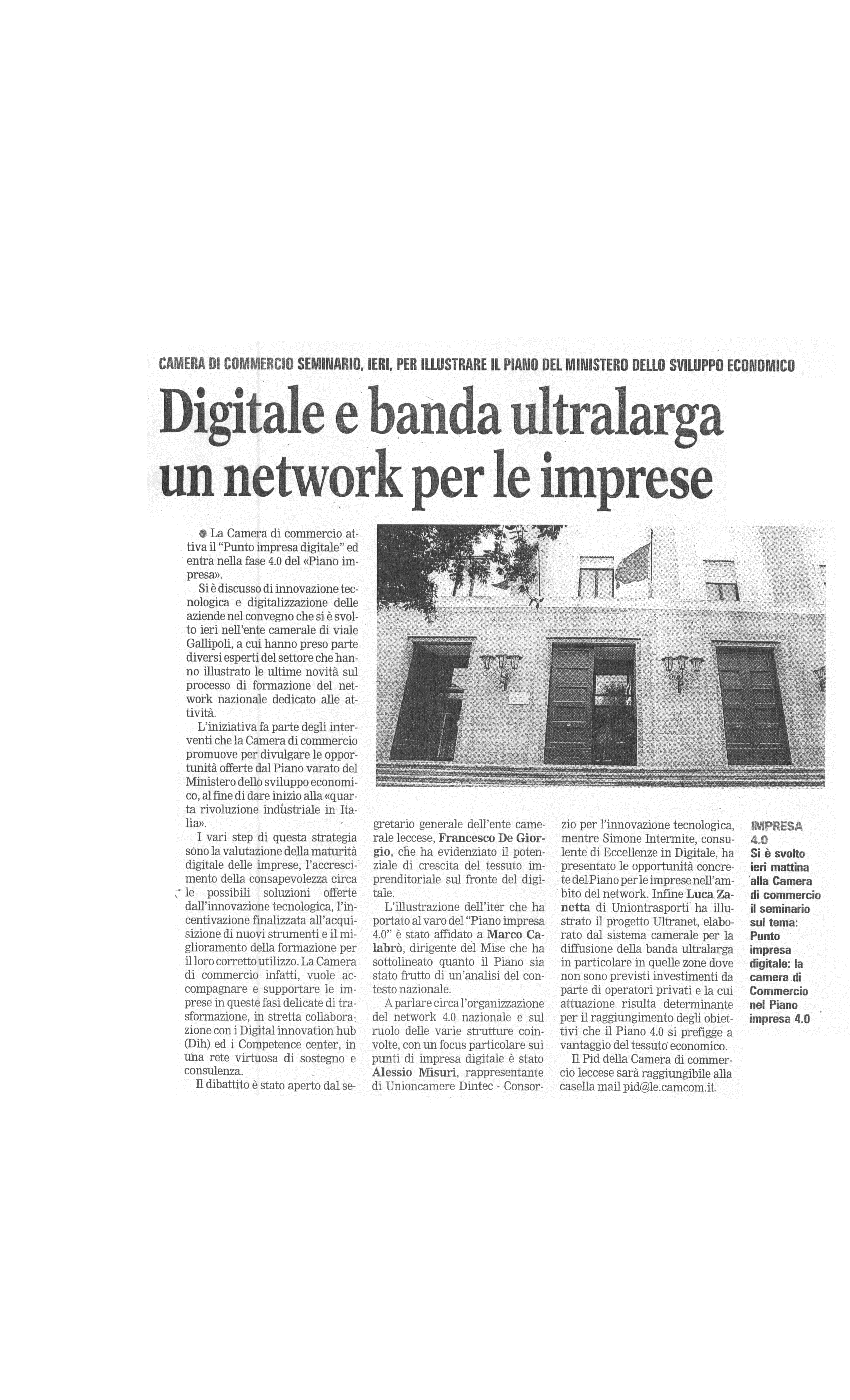 Corriere salentino "Punto Impresa Digitale: la Camera di Commercio nel Piano Impresa 4.0"