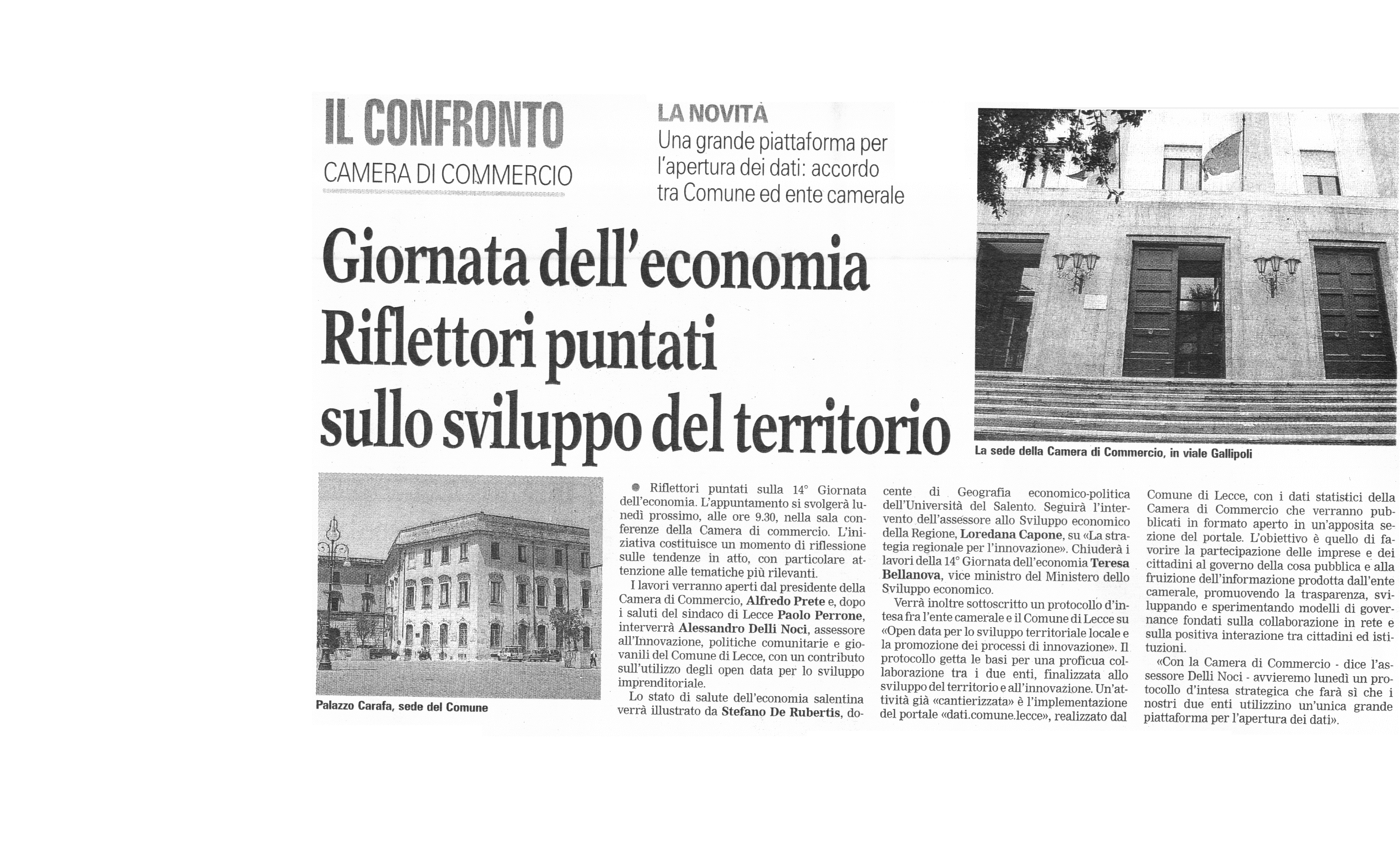 La Gazzetta del Mezzogiorno 14/06/2016 "Sottoscritto un 'open data' per lo sviluppo e l'innovazione"