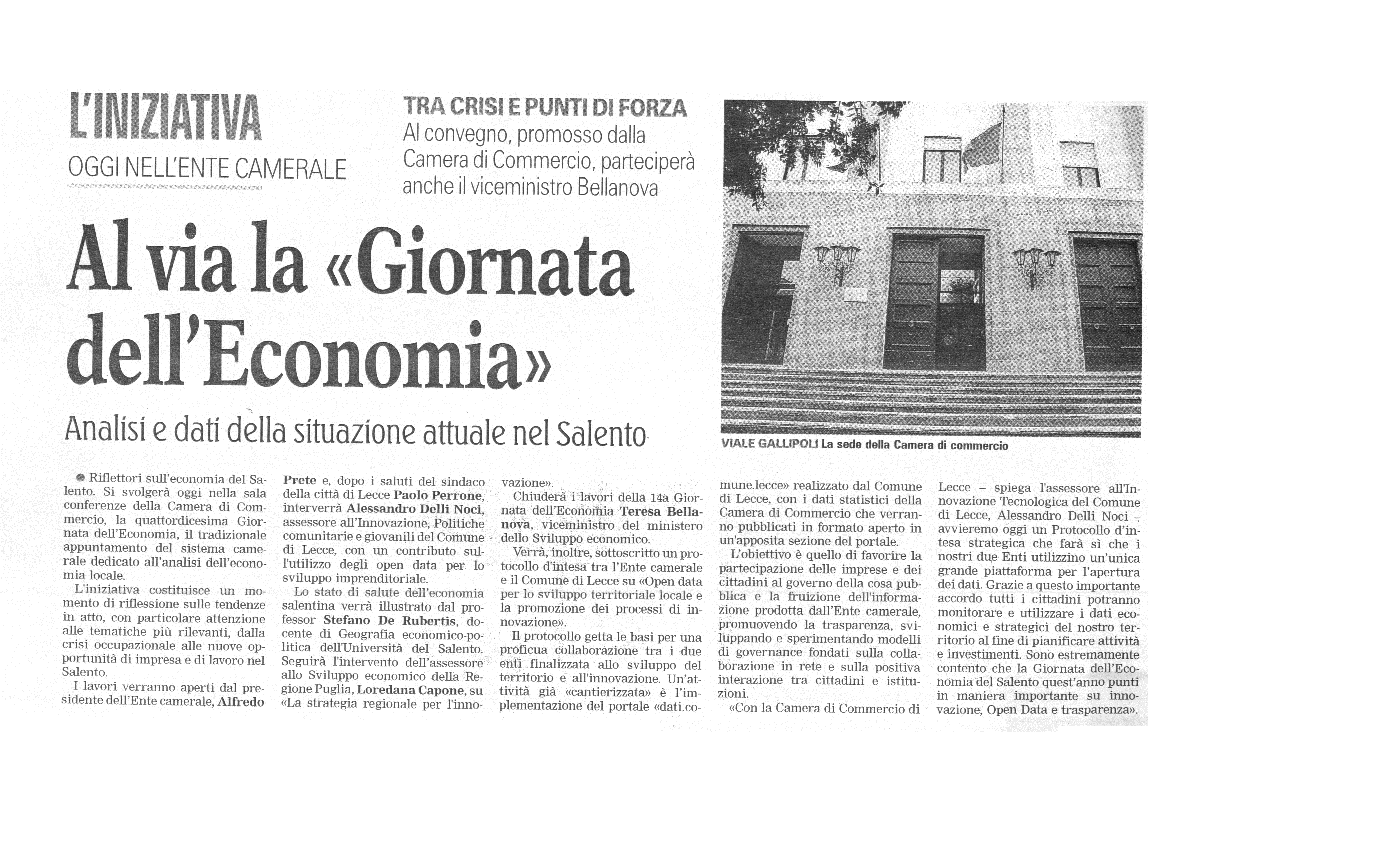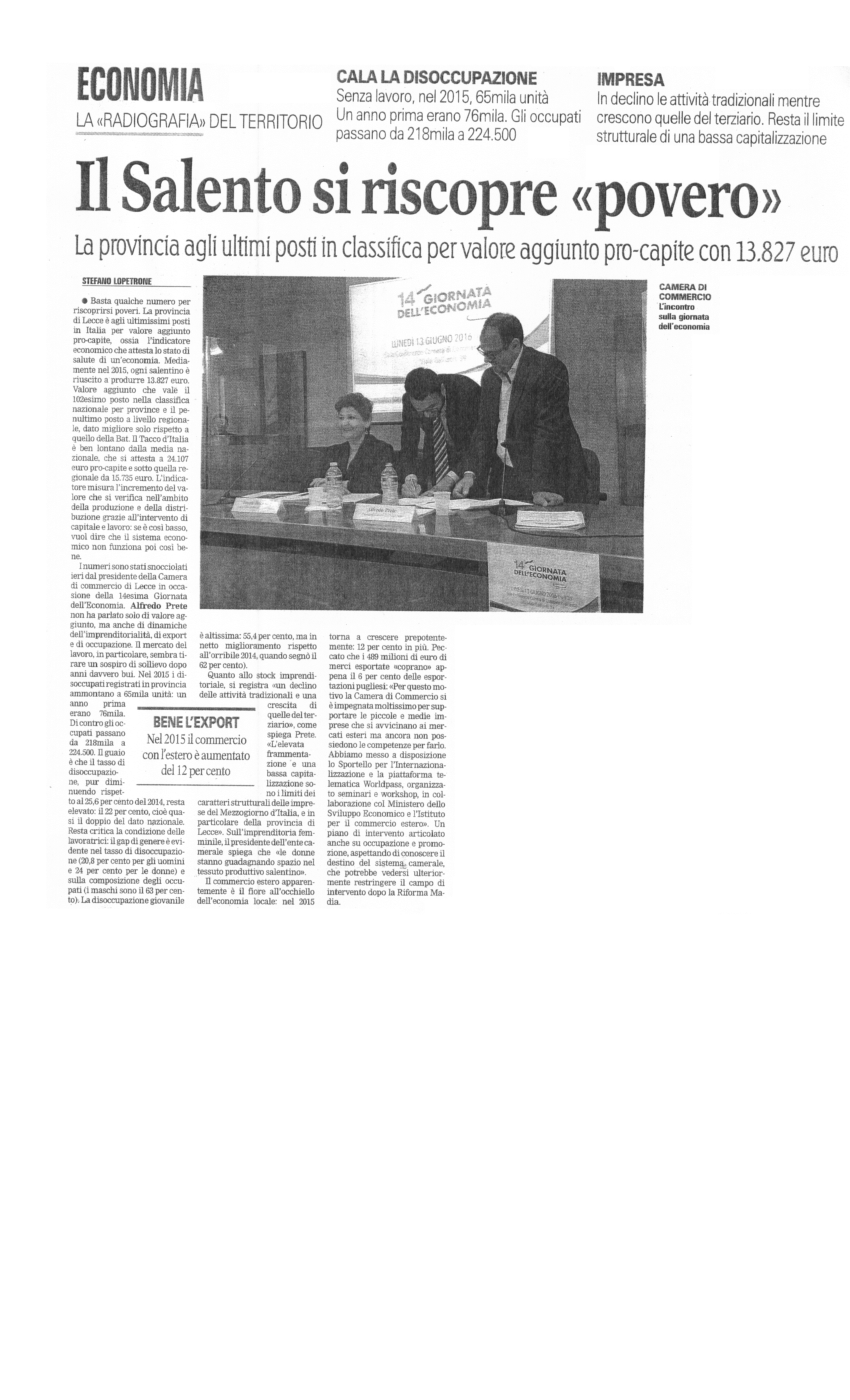 La Gazzetta del Mezzogiorno 13/06/2016 "Al via la 'Giornata dell'Economia'"