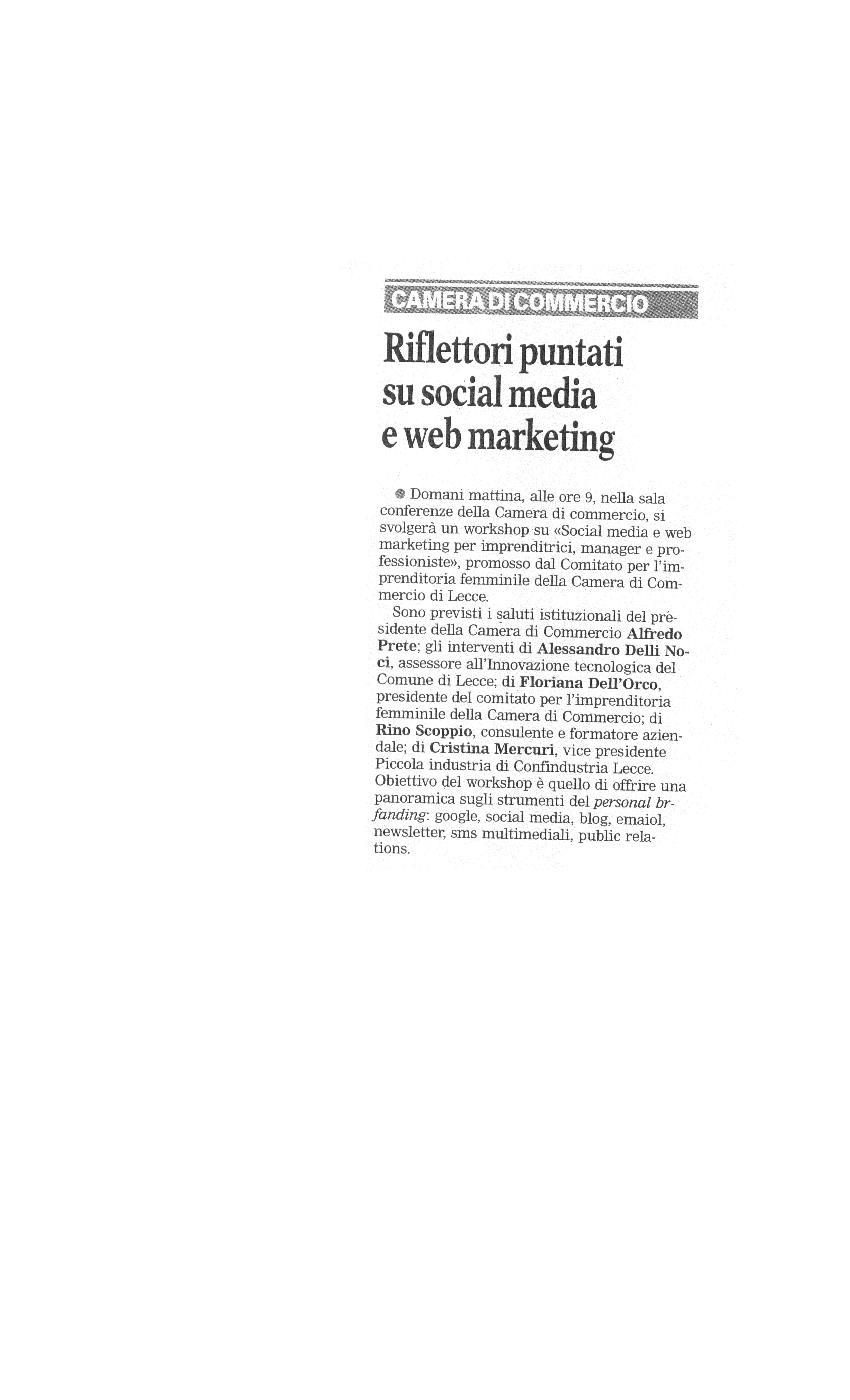 La Gazzetta del Mezzogiorno 30/06/2016 "Camera di Commercio - Web marketing oggi un workshop"
