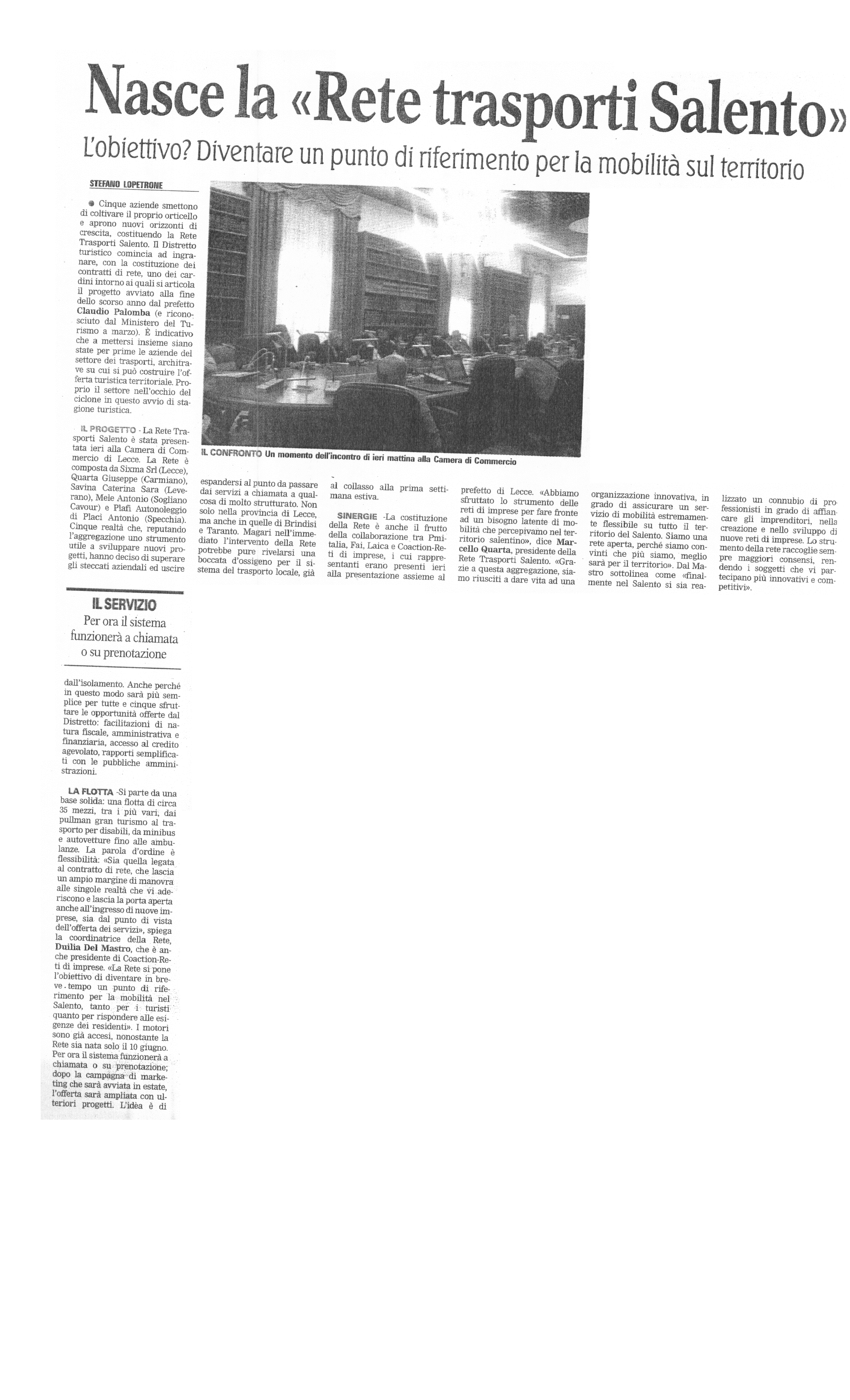 La Gazzetta del Mezzogiorno 30/06/2016 "Nasce la 'Rete trasporti Salento"