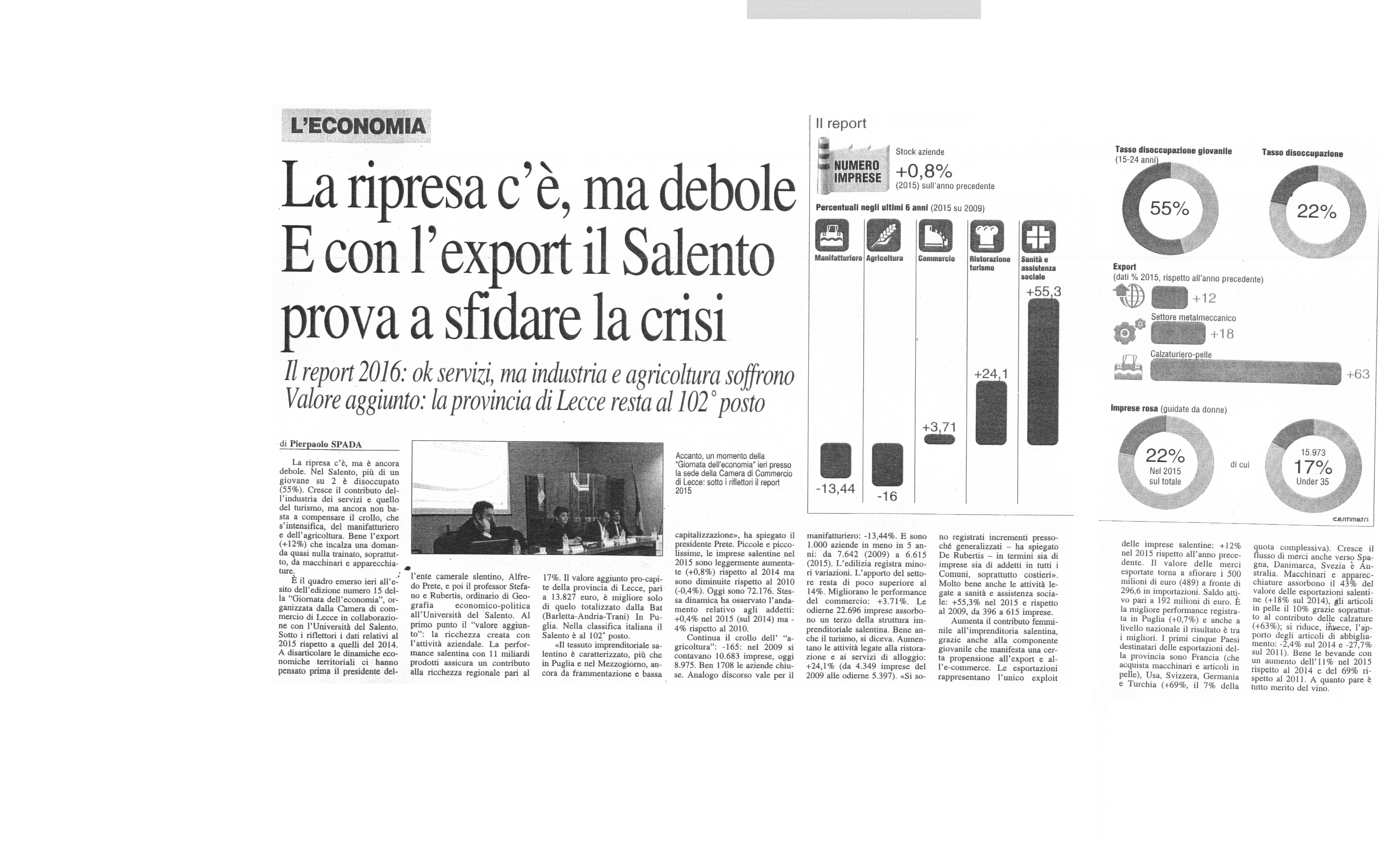 Nuovo Quotidiano di Puglia 19/06/2016 "La Puglia tra crisi e segnali di ripresa"