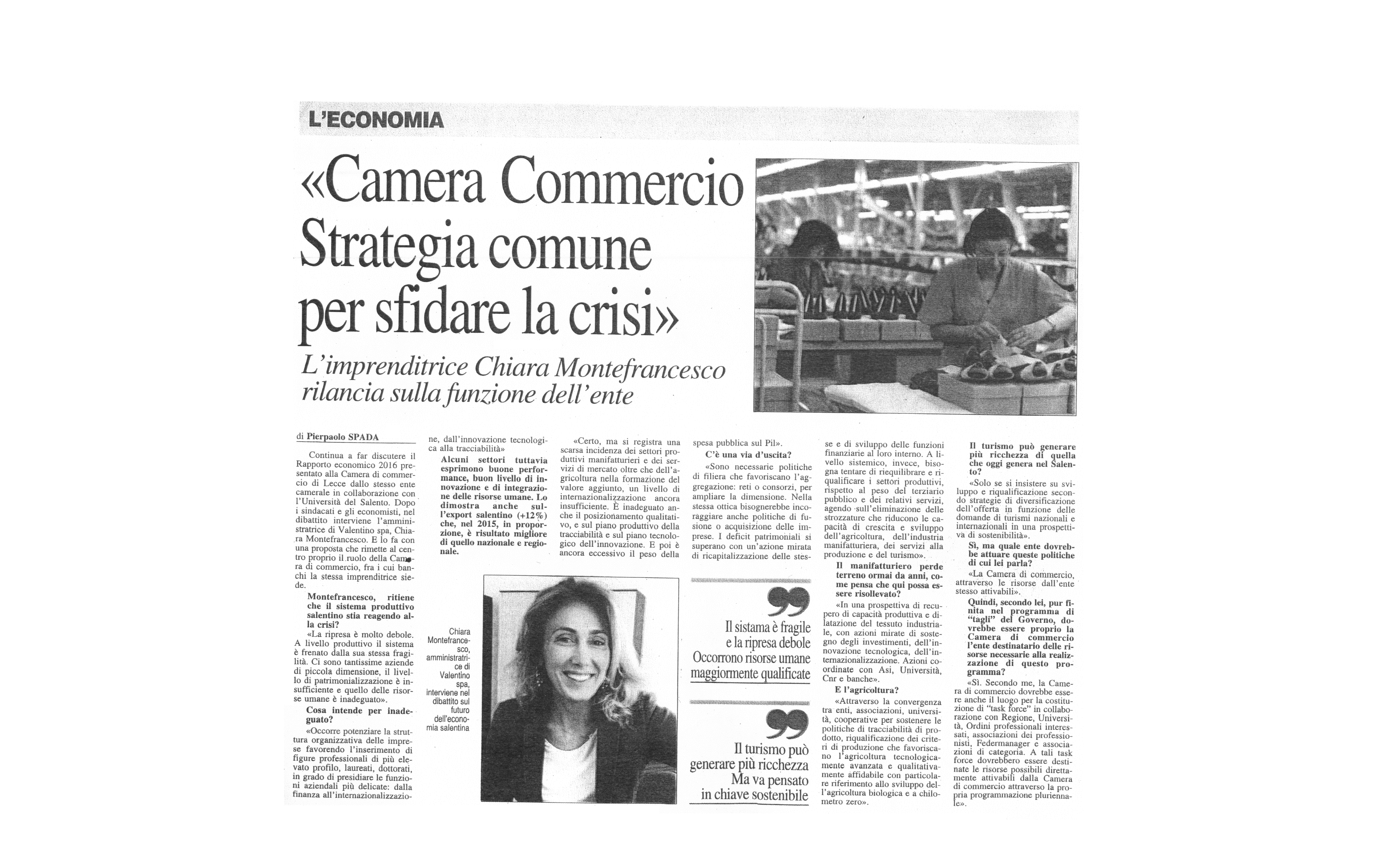 Nuovo Quotidiano di Puglia 20/06/2016 "Camera Commercio. Strategia comune per sfidare la crisi"