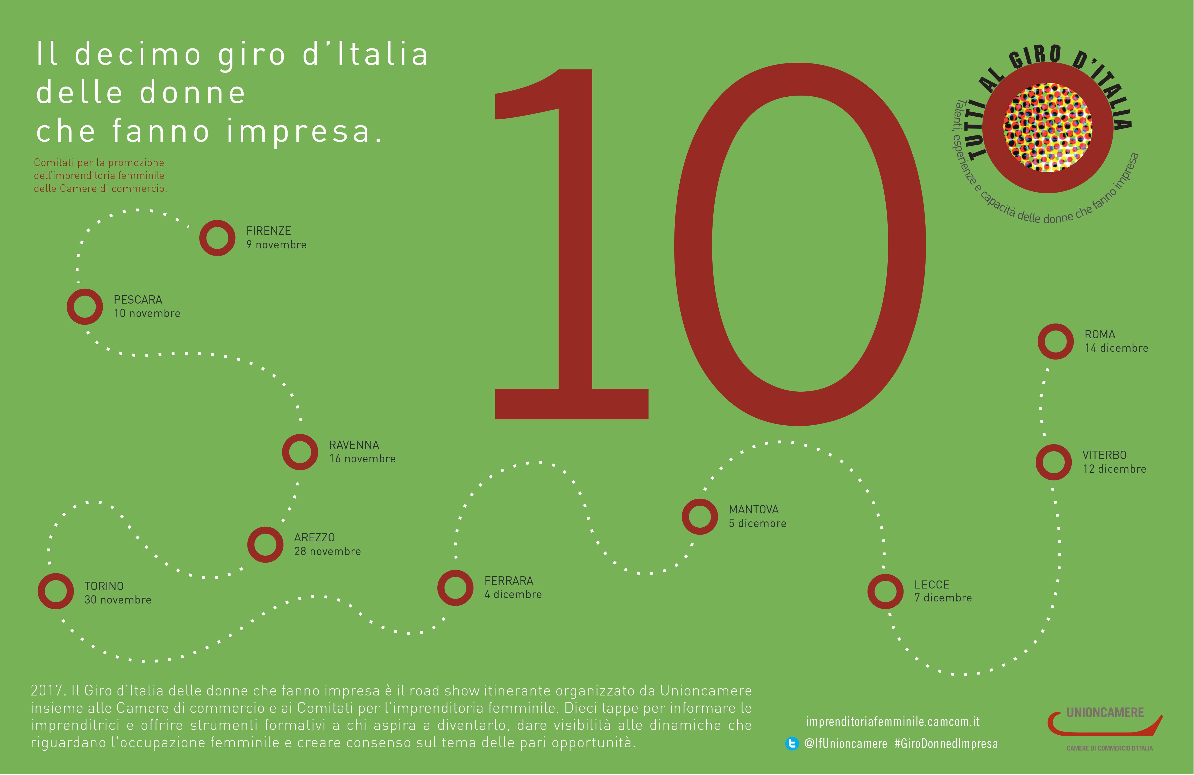 La Camera di Commercio di Lecce, tramite il suo Comitato per la promozione dell’Imprenditoria Femminile, ospiterà nei giorni 7 – 8 e 9 dicembre p.v. la tappa leccese del “Giro d’Italia delle Donne che fanno impresa”, iniziativa del sistema camerale coordinata da Unioncamere che sarà l’occasione, tra le altre, per la premiazione dell' “Imprenditrice Salentina dell’anno”, selezionata per il tramite di un apposito bando voluto dal Comitato per la promozione dell’imprenditoria femminile di questa Camera. L’iniziativa si aprirà il 7 pomeriggio con un seminario dal titolo “Imprenditrici 4.0” dedicato all’innovazione digitale, organizzato in collaborazione con il Comune di Lecce e l'ASSRI, seguiranno la premiazione e l'inaugurazione della mostra d'imprese femminili locali che proseguirà nei giorni 8 e 9 dicembre nella splendida cornice del Castello Carlo V.