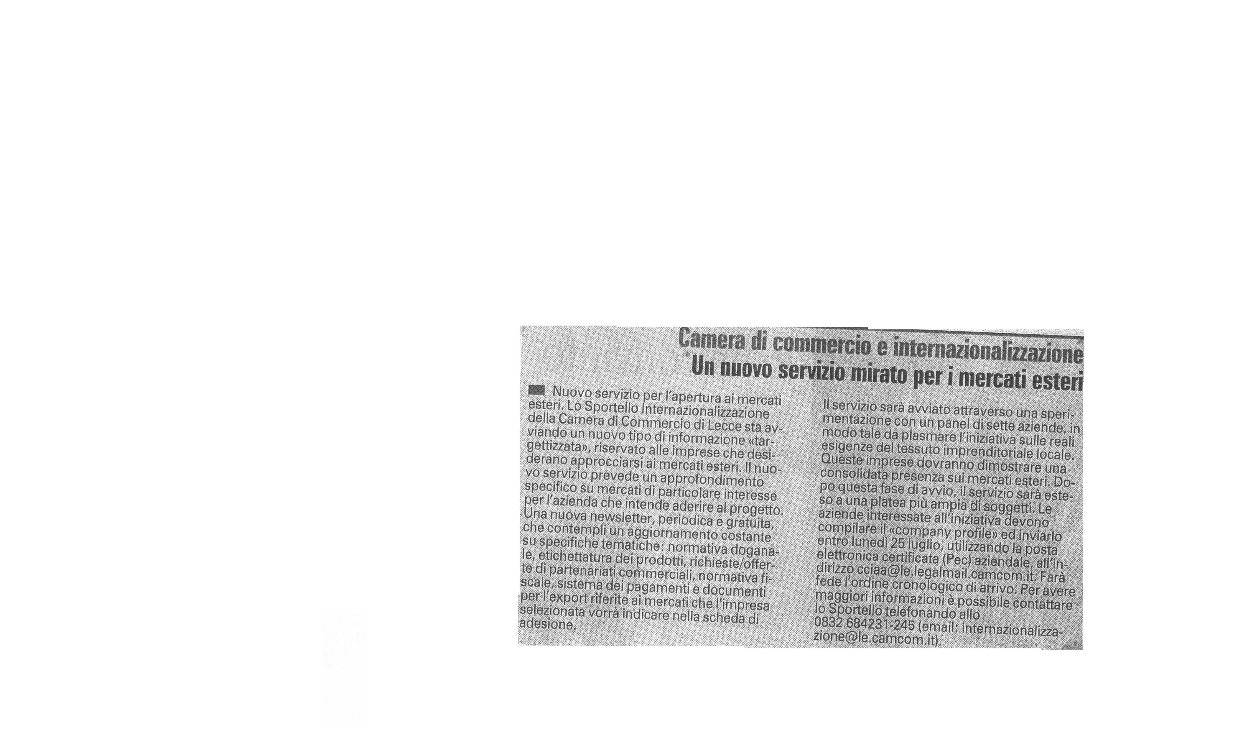 La Gazzetta del Mezzogiorno 04/07/2016 "Camera di commercio - Nuovi orari fino al 9 settembre"