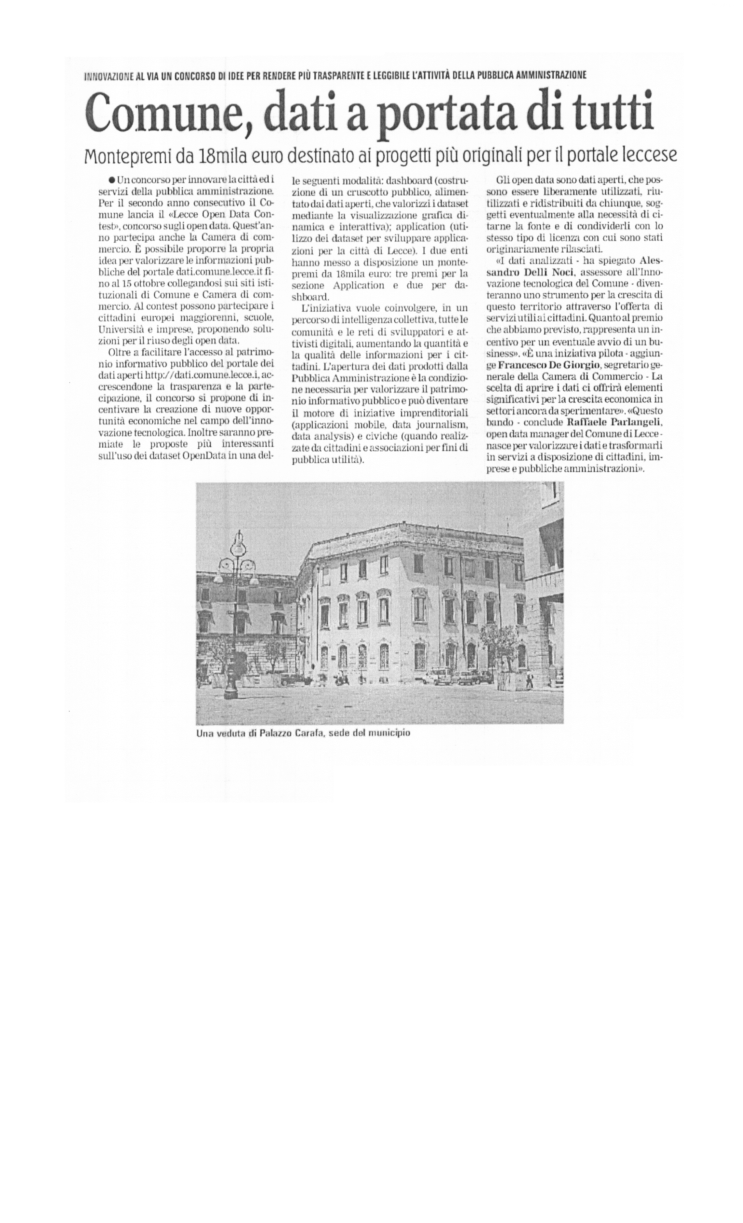 La Gazzetta del Mezzogiorno 29/07/2016 "Comune, dati a portata di tutti"