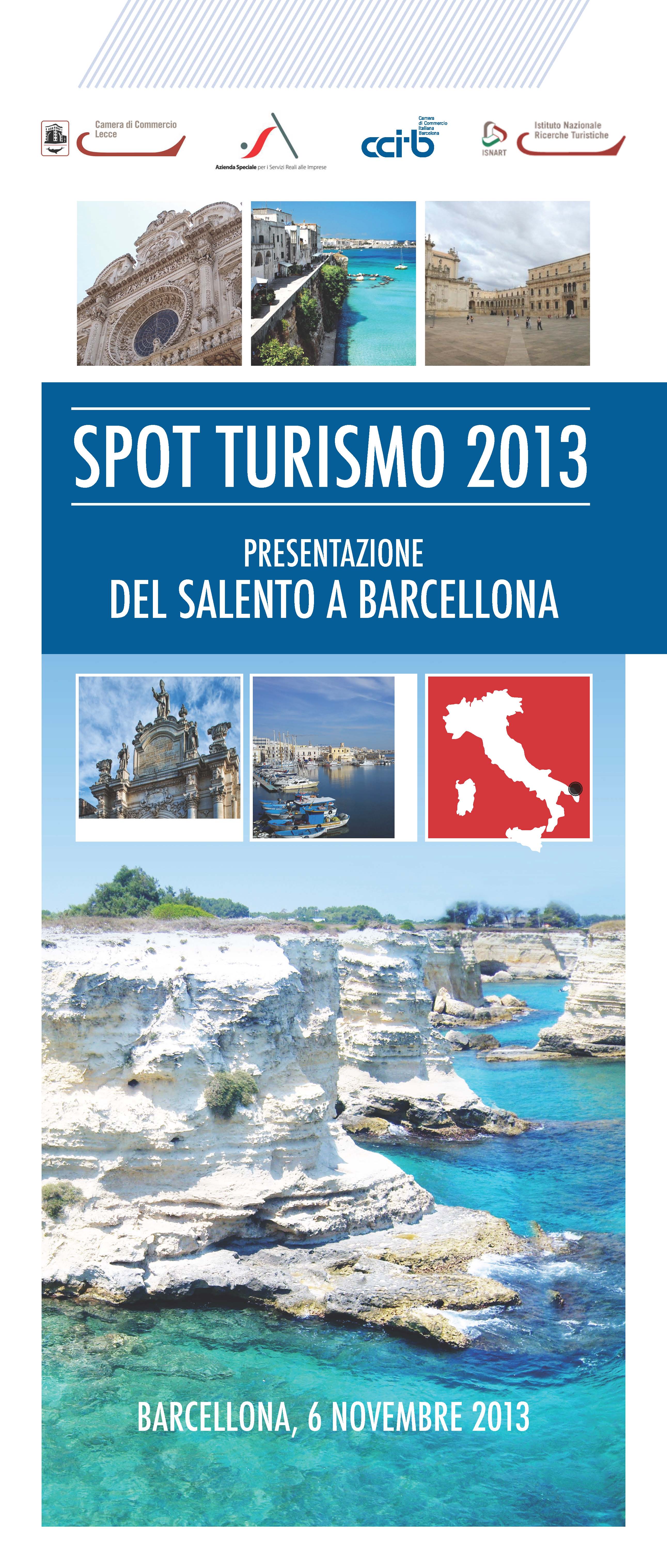 Promuovere il Salento in Spagna è, invece, l'obiettivo della missione Spot sul turismo, che vede protagoniste diverse strutture ricettive certificate con il Marchio Ospitalità italiana e tour operatori salentini, che proporranno ai colleghi catalani pacchetti turistici confezionati ad hoc e finalizzati a far scoprire ai turisti spagnoli le bellezze del Salento.