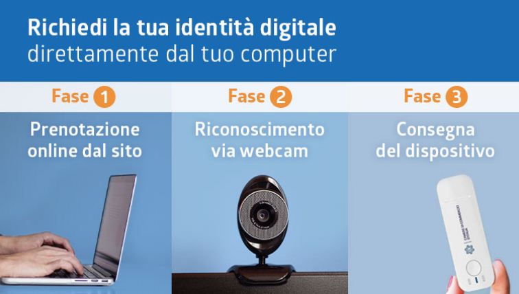 Con il riconoscimento online via webcam ovvero mediante SPID, in pochi minuti, potrai richiedere la Carta Nazionale dei Servizi (CNS) con Firma digitale su dispositivo token DigitalDna wireless o smart card comodamente da casa tua o dal tuo ufficio. Per ulteriori informazioni su come procedere puoi consultare l'apposita Guida.
