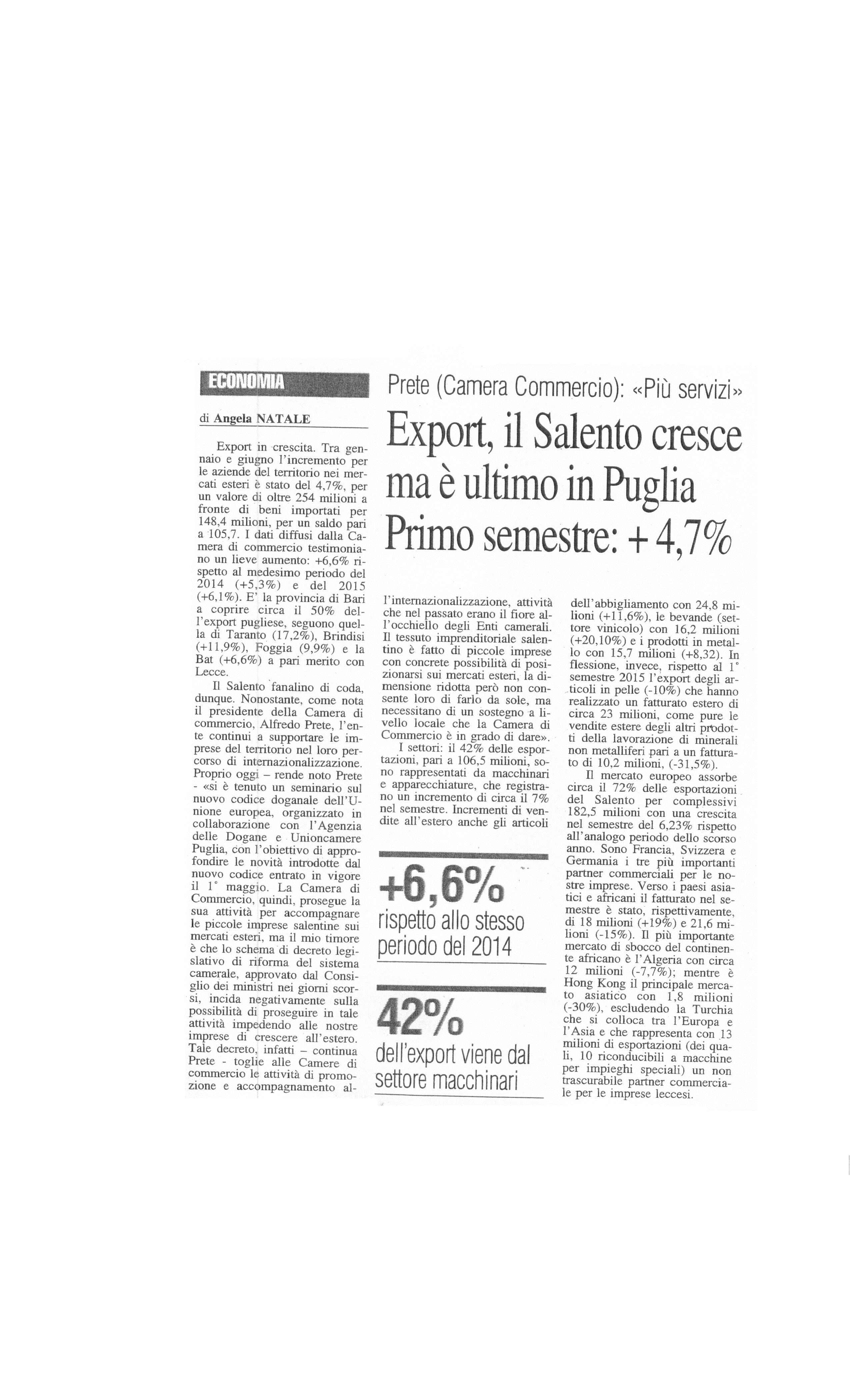 Nuovo Quotidiano di Puglia 10/09/2016 "Nuovo codice doganale: incontro"