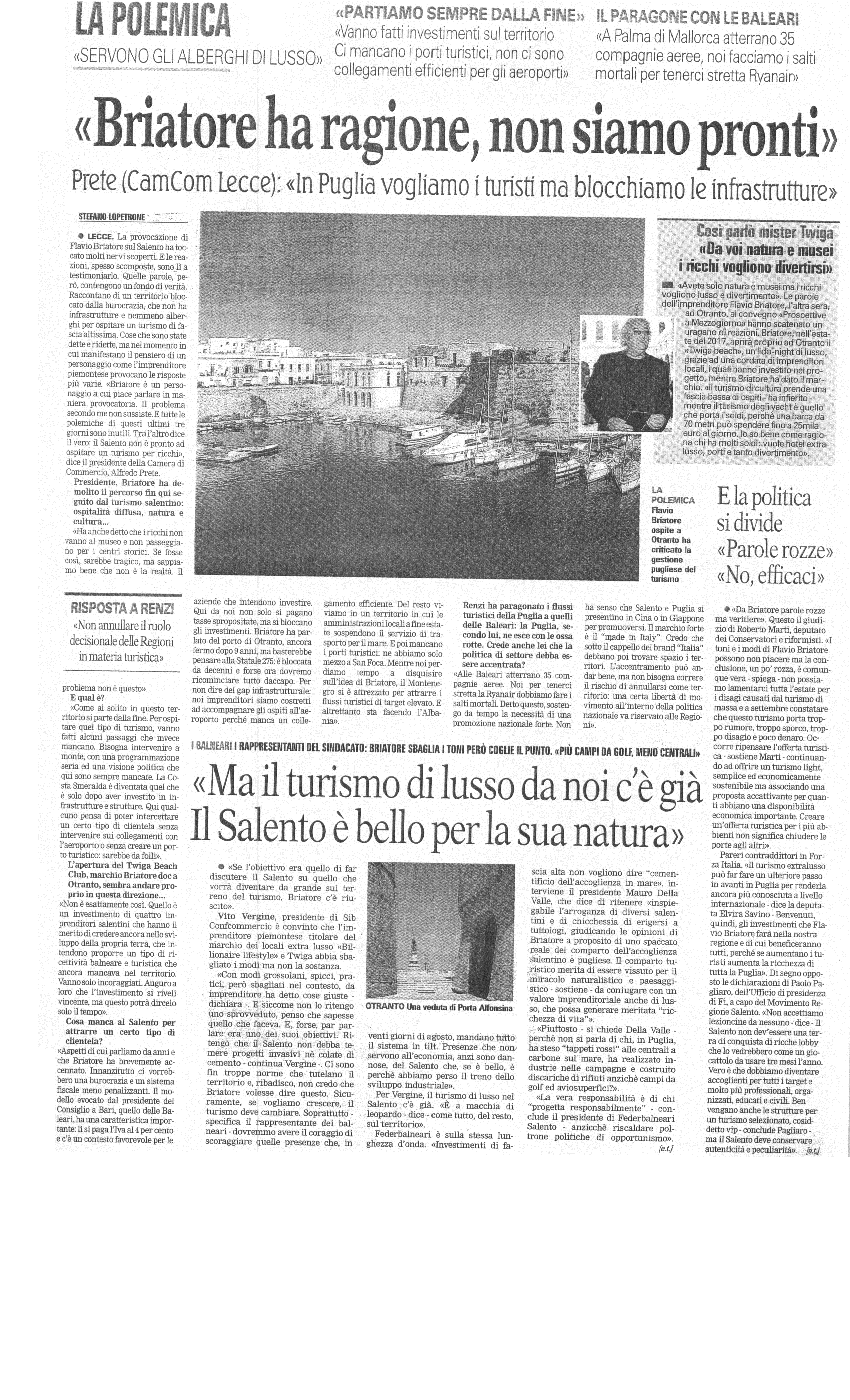 La Gazzetta del Mezzogiorno 22/09/2016 "Briatore ha ragione, non siamo pronti"